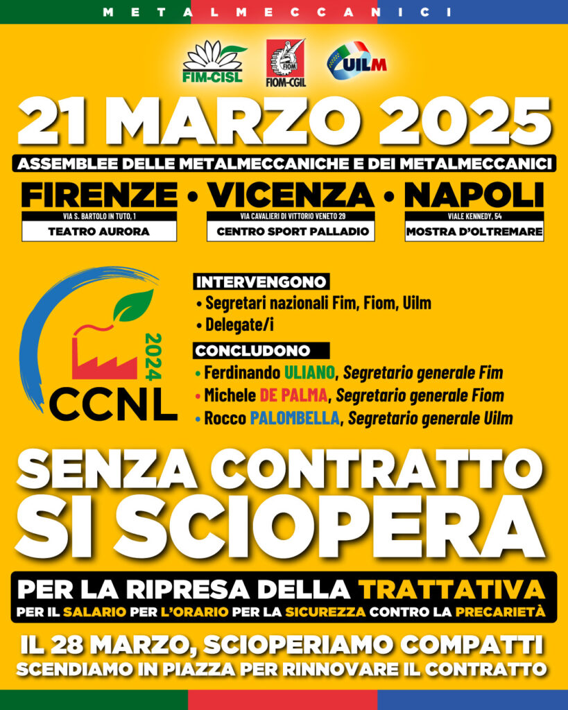 Il 21 maro Vicenza ospita l’assemblea delle delegate e dei delegati di FIM FIOM UILM in preparazione dello sciopero del